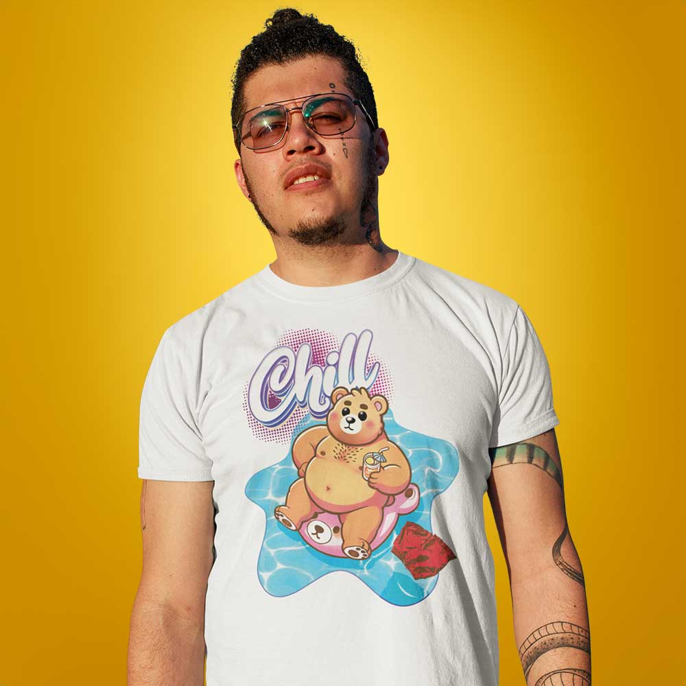 Float into visibility with our Bear Pool Pride Tee, featuring a chill, shirtless bear soaking up the good vibes on a floatie that screams “I came to slay and sip.” Whether you’re poolside at Lazy Bear, dancing in Gold Rush, or lounging post-grindr date with snacks and a fan, this tee reminds the world that chill is a form of protest.
