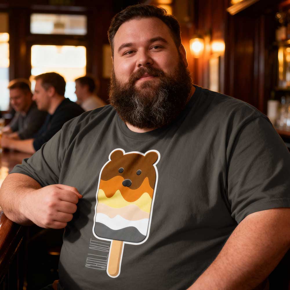 Calling all bears, cubs, chubs, and admirers — this one’s for you. Our Bear Paddle Pop T-Shirt is the ultimate sweet treat for big boys with bigger vibes. Featuring a deliciously cheeky popsicle bear graphic, it’s playful, pride-ready, and built to turn heads (and maybe melt a few hearts) at your next bear event, pride parade, or gay bar crawl.