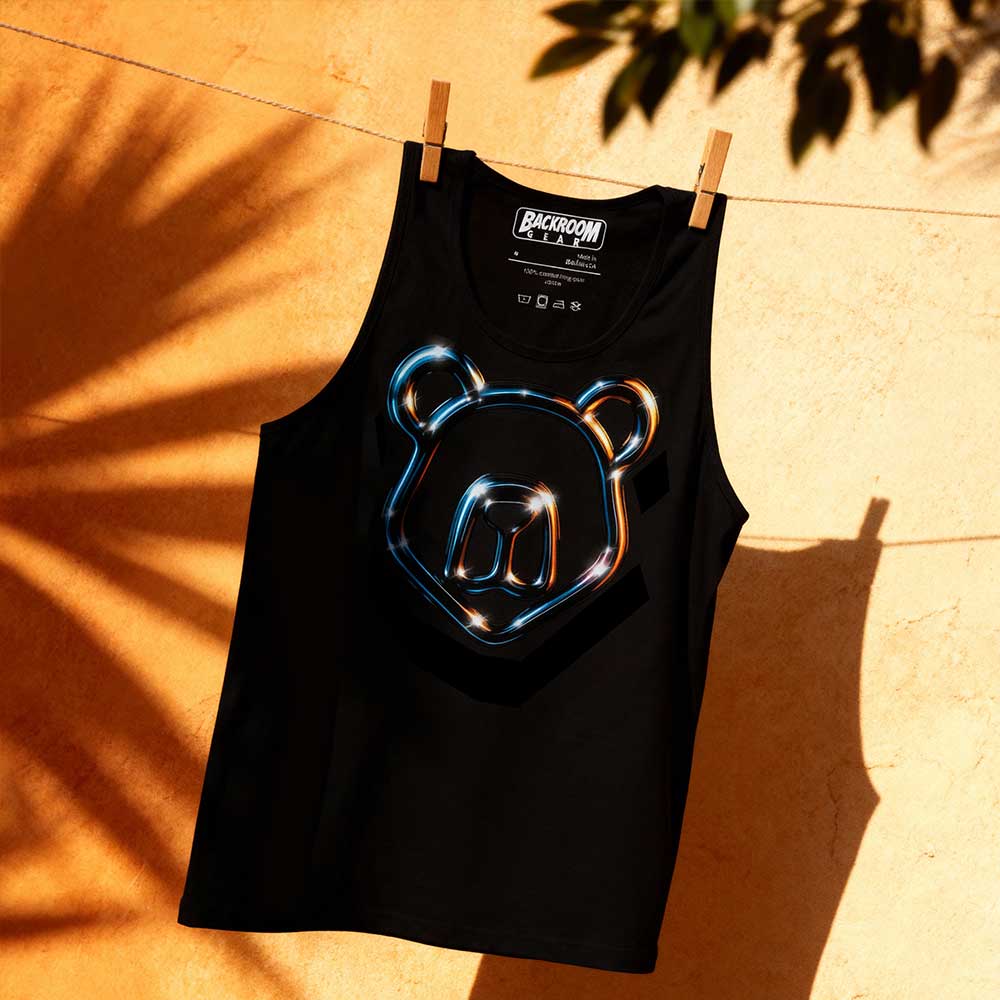 Featuring our signature neon bear head graphic lit up in glints of electric fire, ice, and pure attitude, this tank is your invite to the bear party of the year.