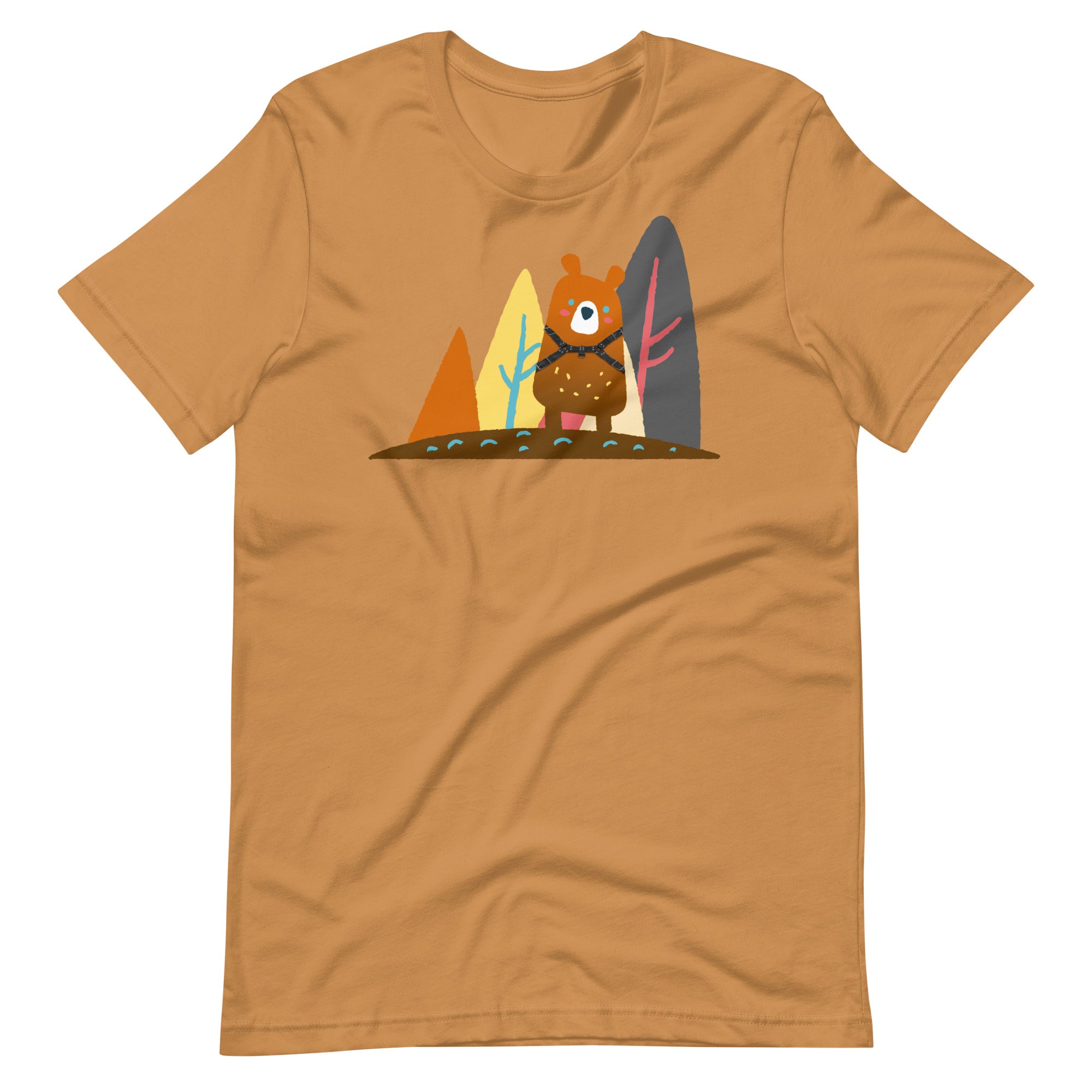 Introducing our "Does a Bear F@#k in the Woods?" T-Shirt, a cheeky and fun addition to your wardrobe! Perfect for the bear community, this tee features a charming bear wearing a harness, set against a scenic forest backdrop, highlighting the iconic bear pride flag colors.