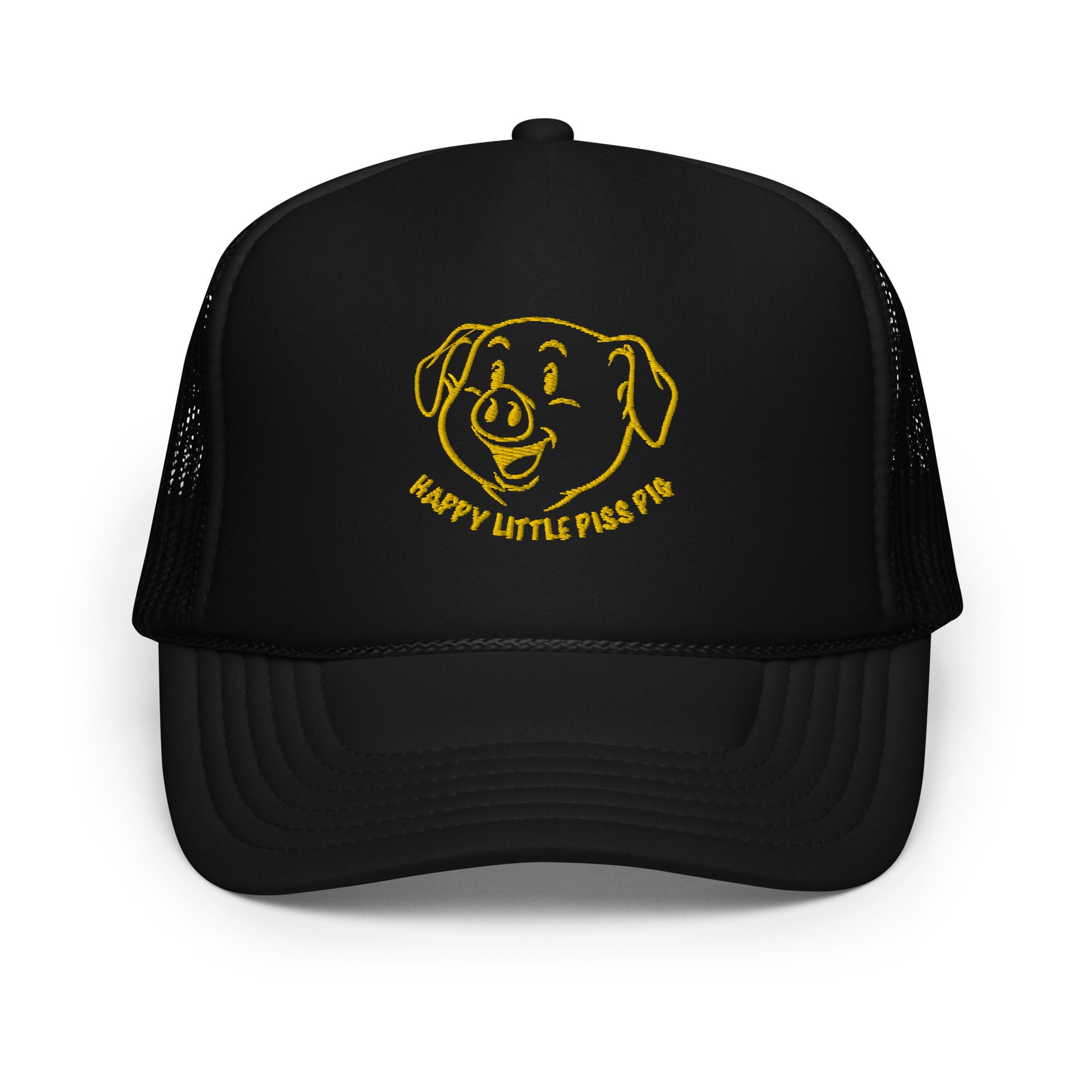 Unleash your wet and wild side with our Happy Little Piss Pig Cap! Featuring a bold graphic of a yellow pig with the words "Happy Little Piss Pig" beneath, it's the perfect accessory to embrace your naughty nature. Let your inner piss pig shine and proudly wear this cap to make a statement that's both daring and playful. Get yours today!