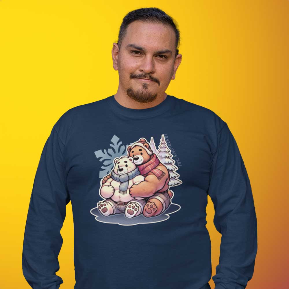 Our "Hibernate & Chill" long sleeve tee captures the cozy vibes of winter with an adorable bear couple bundled up and ready to hibernate together. Perfect for the gay bear community, this shirt radiates warmth, pride, and a soft touch that’s ideal for cold-weather cuddles. Whether you’re out celebrating the season or relaxing indoors, this shirt is a reminder to embrace your huggable, lovable bear pride.