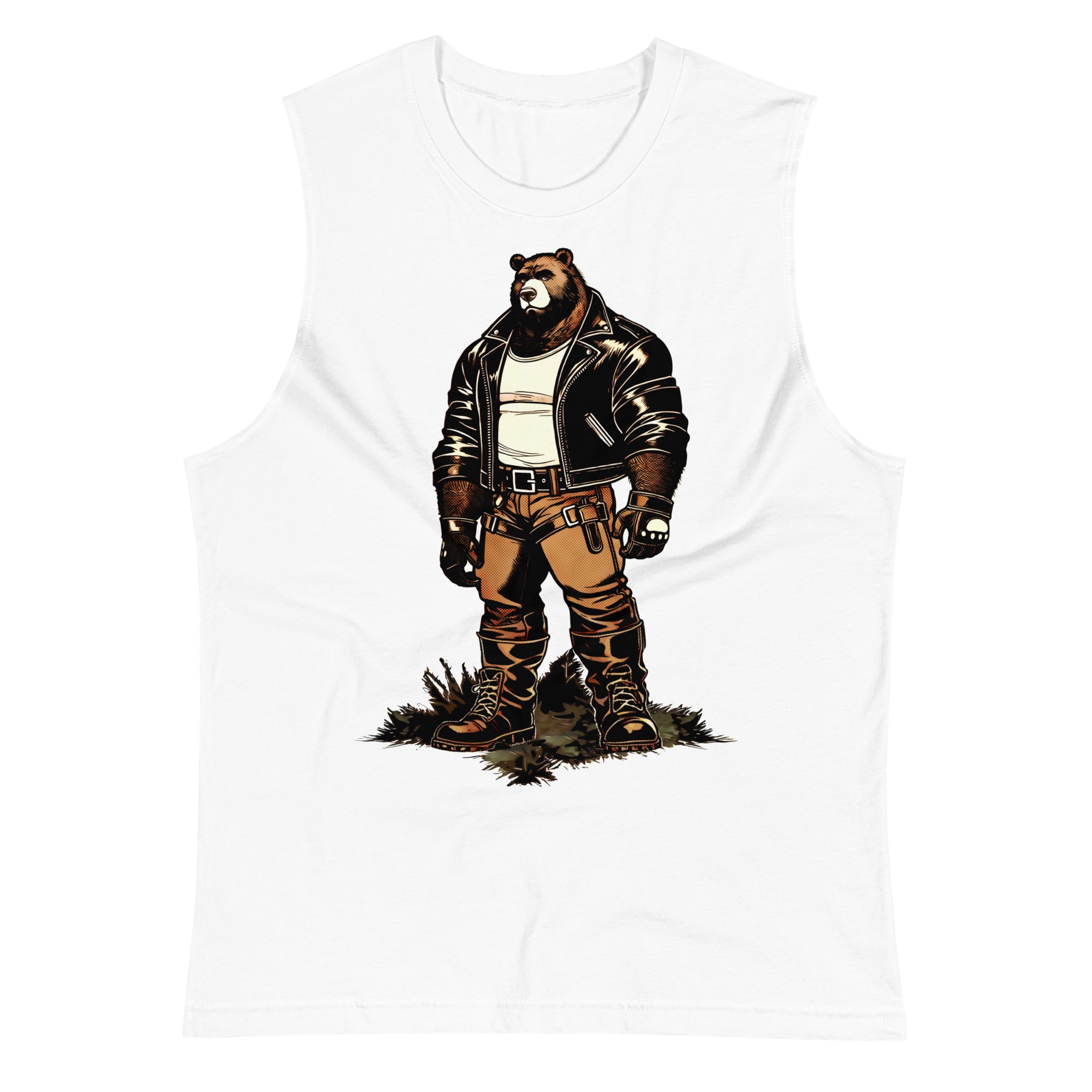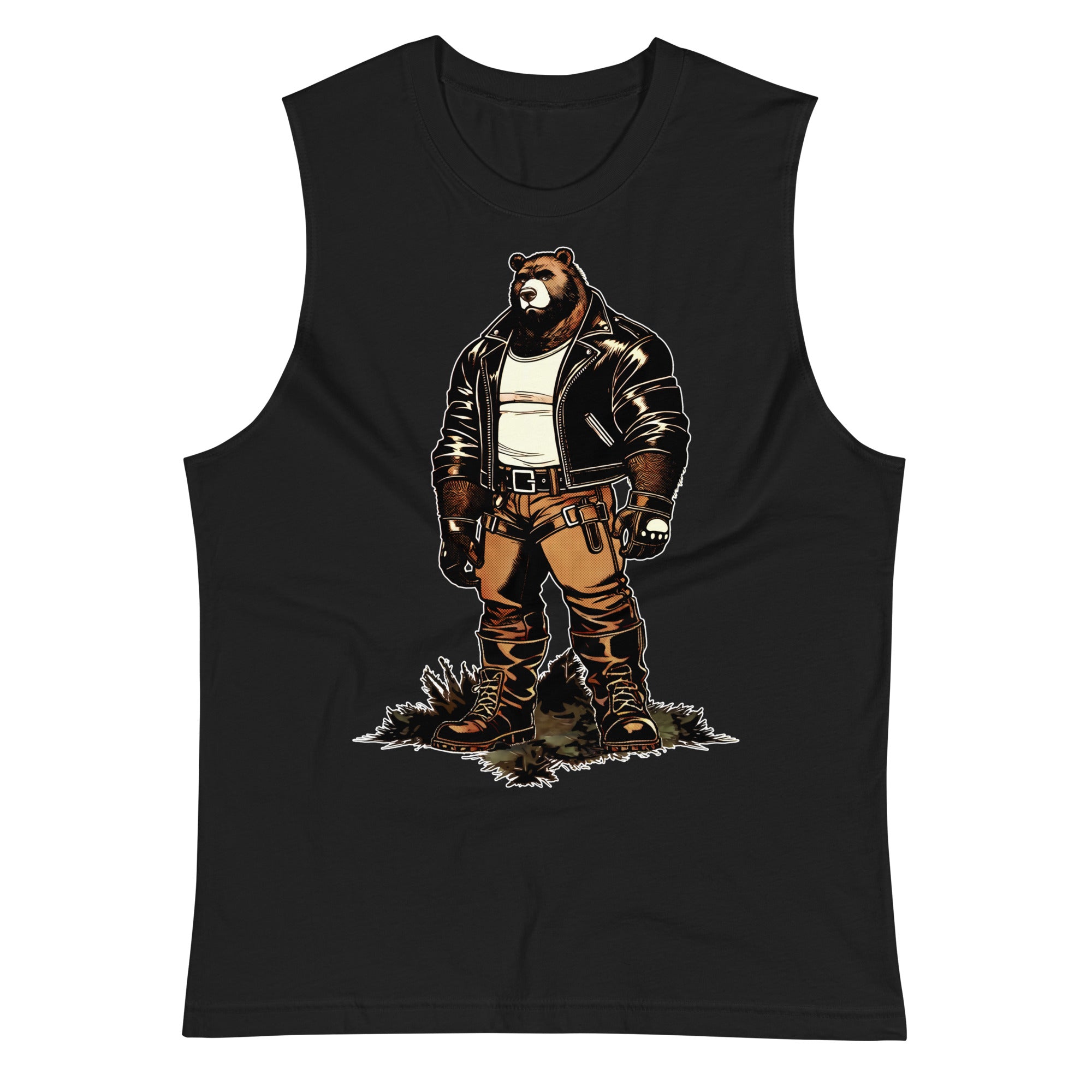 Introducing our "Leather Daddy Bear" muscle shirt – a striking piece for the bear community and leather enthusiasts! This design embodies strength, pride, and authenticity, featuring a powerful bear clad in a classic leather jacket and boots. Wear it to show your solidarity and express your unique identity with pride.