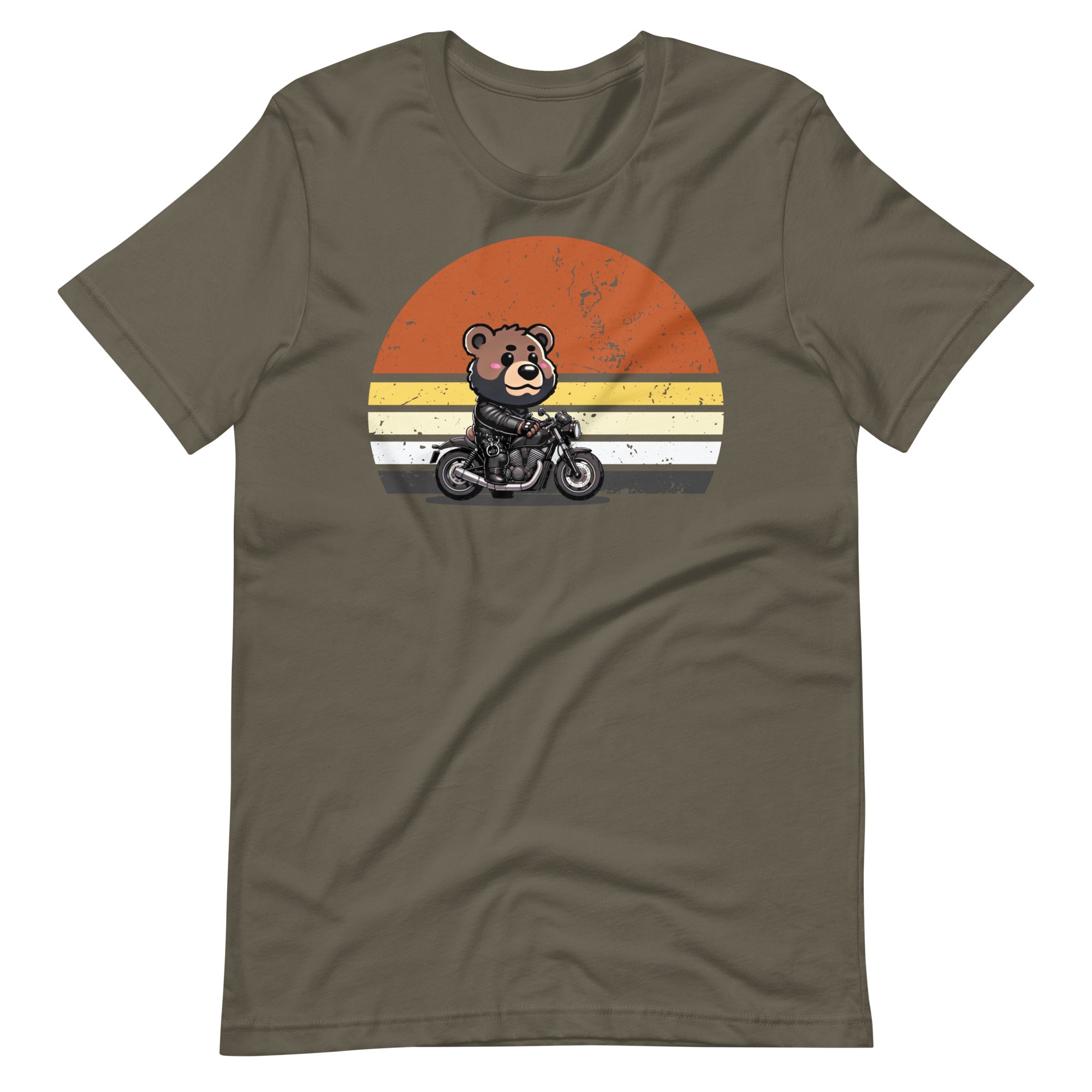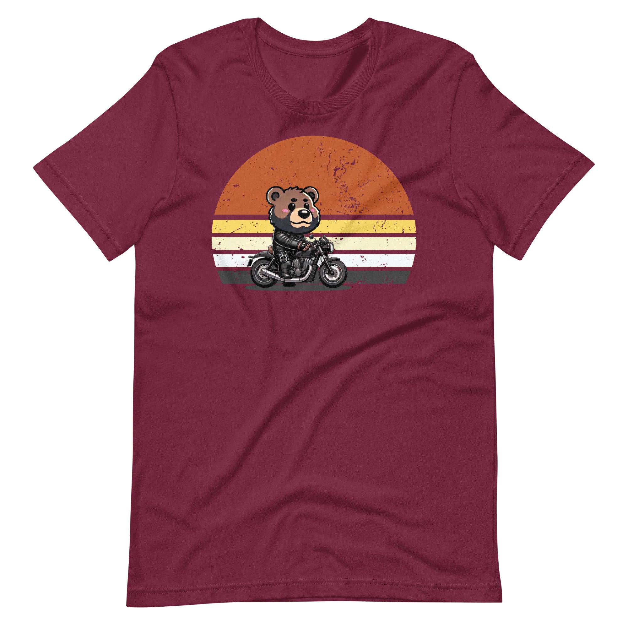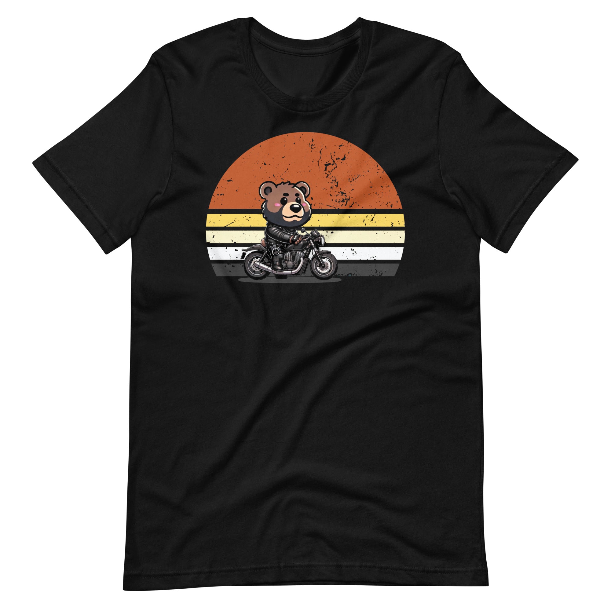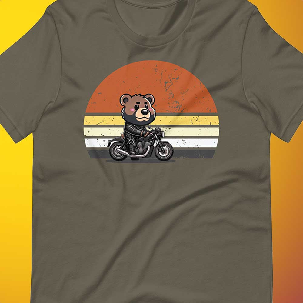 Get ready to rev your engines and embrace your wild side with our Biker Bear T-Shirt! This fun and playful tee features an adorable bear in full leather gear, cruising on a motorcycle with a retro sunset background. Perfect for the bear community and allies, this shirt is a joyful blend of rugged and cute.