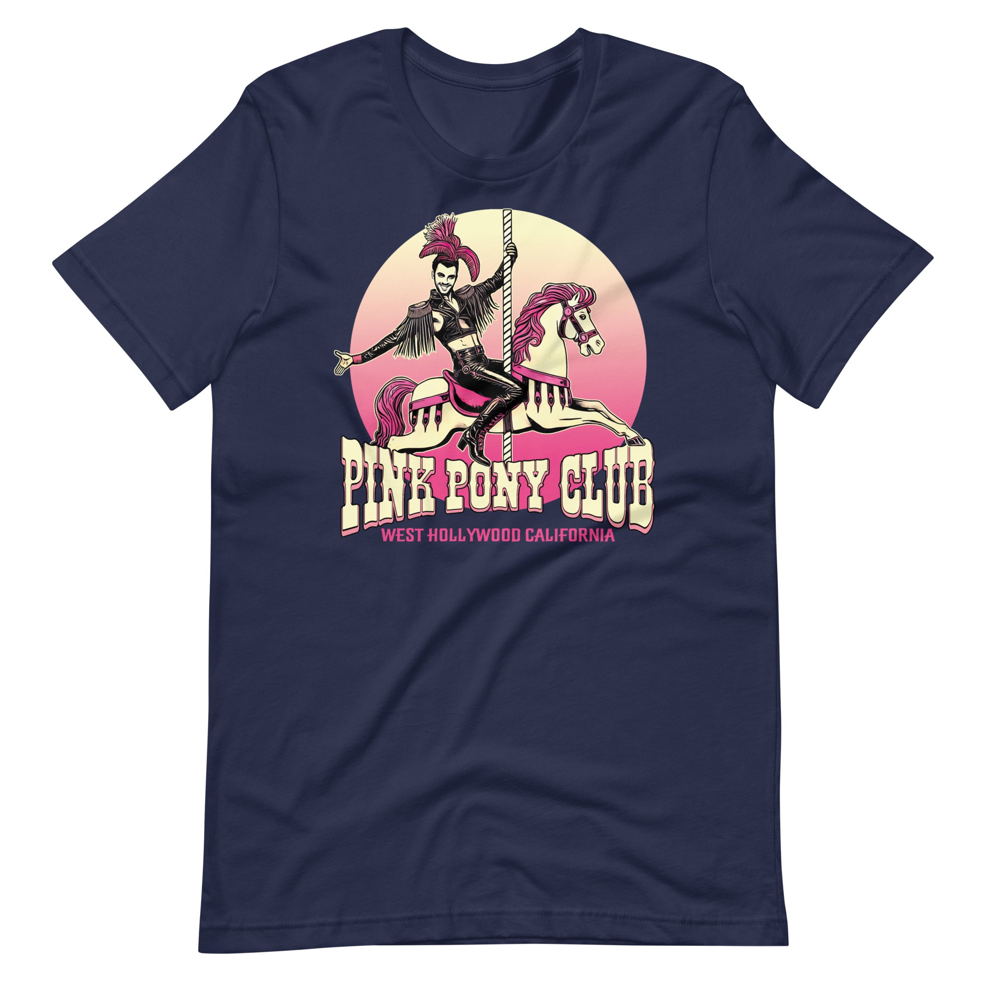 Get ready to saddle up and embrace your fabulous side with our Pink Pony Club shirt! This vibrant and playful design is perfect for those who love to combine a bit of camp with a lot of charisma. Featuring a bold illustration of a leather-clad rider on a carousel pony, this shirt is a nod to West Hollywood's iconic LGBTQ+ culture. Whether you're strutting down the boulevard or hitting the dance floor, this shirt will ensure you stand out in the most fabulous way.