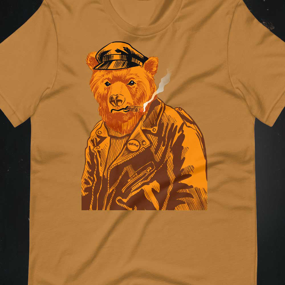 Show off your true bear nature with our Retro Leather Bear T-Shirt. Get yours today and embrace the bold, classic look!