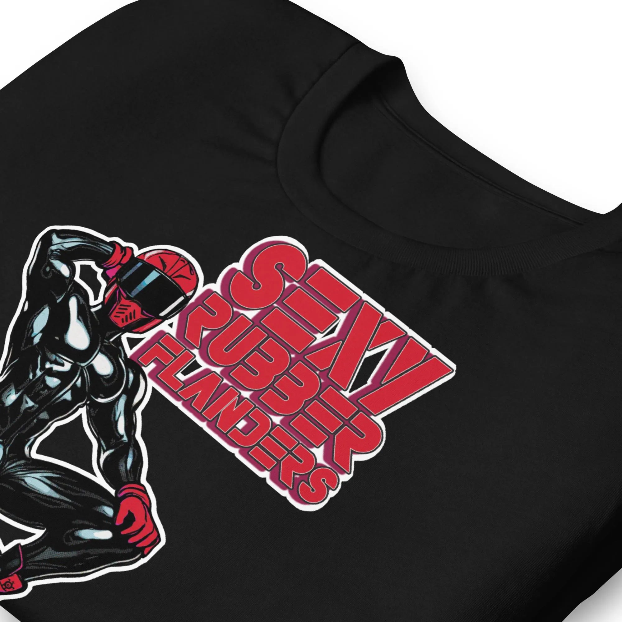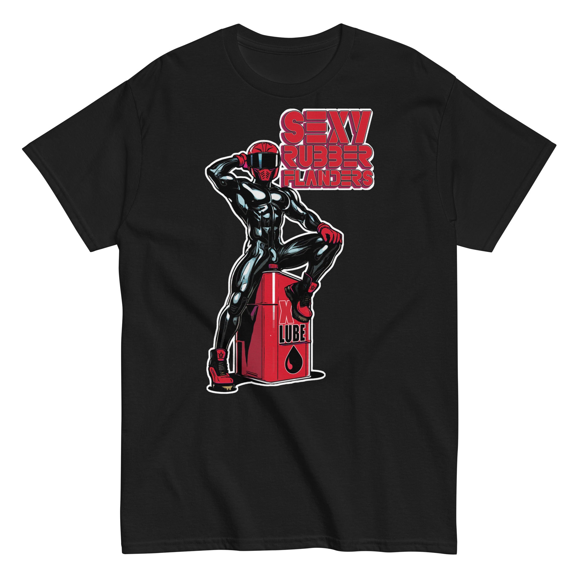 Step into the world of playful fetish fashion with our Sexy Rubber Flanders shirt! Featuring a bold, eye-catching design of a muscle-bound figure in sleek rubber gear, posed confidently atop a piss/lube barrel, this shirt perfectly blends humor with kink. The bright accents pop against the dark background, making it an ideal choice for flagging your kink at any event or casual hangout. Crafted from high-quality fabric, it offers comfort and durability, ensuring you can express your fetish with pride.