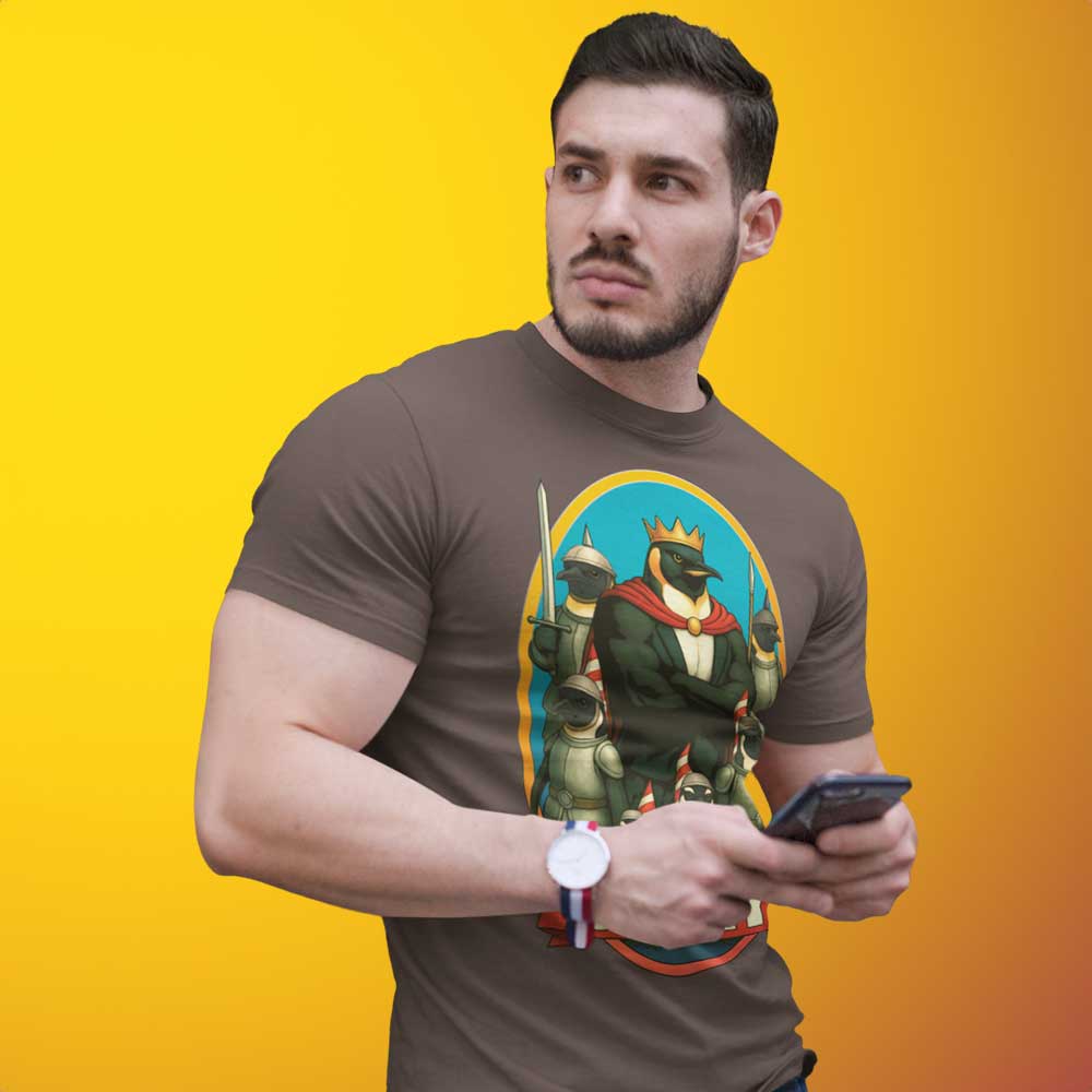 Get ready to turn the Arctic into your runway. Our “SLAY” tee brings you the fiercest royal court this side of the South Pole – a jacked penguin king and his fabulous army, armored in style and marching for justice. With regal vibes, glittery crown, and a cape that screams drama, this look isn’t just fashion – it’s a movement.
